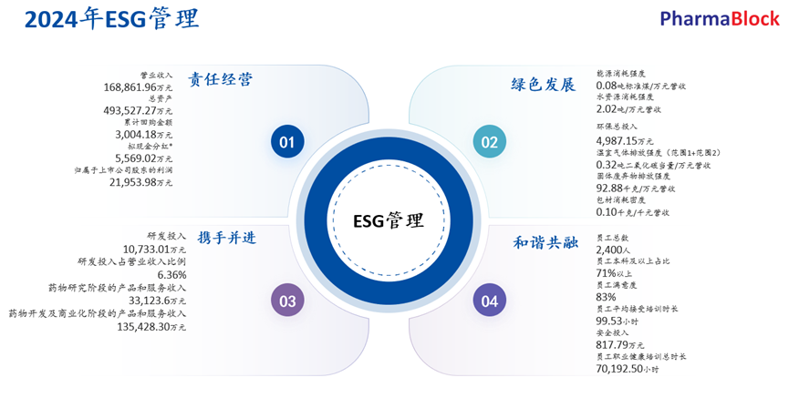 绿智创新三篇章是药石科技通过绿色和智能的技术创新助力企业、行业可持续发展的良好实践。在绿智赋能维度,六大创新技术平台实现多重突破:连续流技术团队攻克“深冷釜式反应常温连续化生产”难题,并创新性地将连续流技术与臭氧化技术结合精准控制反应过程,有效解决强放热难题并大幅度减少危险废弃物产生,相关成果成功入选长三角地区(江苏)清洁生产典型案例;合成生物学技术团队完成逾百项酶工艺路线项目,数智赋能平台研发的酶进化智能算法显著提升酶蛋白改造成功率;金属催化技术团队重点突破 Ullmann 铜催化偶联及 Noyori 不对称氢化两大核心技术领域,成功实现两大技术的产业化应用。其中,Ullmann 铜催化体系为贵金属催化偶联提供了创新替代方案;Noyori 不对称氢化技术则与现有酶催化体系形成优势互补,显著提升公司在不对称合成领域的技术实力与解决方案能力。;绿色发展技术推动循环经济应用与自动化升级,多项成果促进药石科技蝉联2023、2024年度ACS CMO绿色化学卓越奖。在绿链延伸维度,公司构建涵盖环境保护、商业道德、产品质量、健康与安全、劳工权益、多元化六大维度的供应链ESG管理体系,通过制定供应商行为准则、提供ESG体系建设支持、开展审计与改进帮扶,推动价值链协同可持续发展。在绿业共融维度,药石科技积极参与和举办行业展会及绿色化学论坛,汇聚产学研和国内外专家力量探讨医药绿色化路径,成为行业协同创新重要纽带。