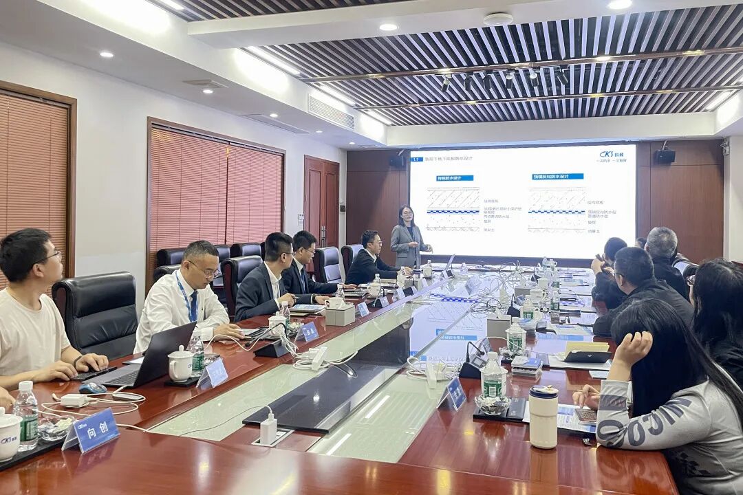 科顺股份集团市场中心总监董海、工程管理中心总监田磊、技术中心总监宋桃,工建集团副总裁李洪林等领导热情接待,全程陪同参观交流。