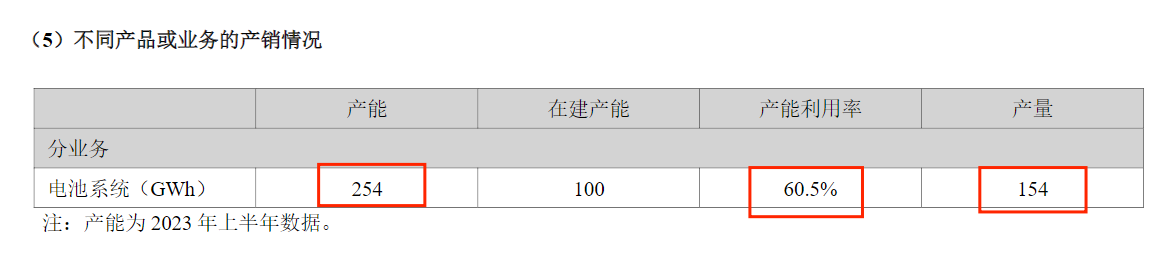 从宁德时代半年报里,也能看出一些“隐忧”。财报显示,其2023年上半年电池系统实际产量仅为154GWh,而产能却已扩建至254GWh,产能利用率大幅跌至60.5%,2022年同期则超过80%。持续扩张的产能并没有转化为产量,四成产能被“闲置”。