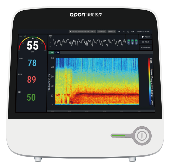 在“人工智能+”医疗服务方面,《实施意见》提出AI辅助诊疗,临床监测可“推广床旁智能设备,开展病情监测预警”,《参考指引》中“手术智能辅助规划”场景也明确涵盖了围术期智能影像分析的应用。爱朋ADM系列麻醉深度监护仪正是这一方向的实践成果。该设备可实时采集并分析患者脑电信号,结合创新的CSI脑状态指数和频谱分析技术,为医生提供更精准的深度监测依据,让术中麻醉更安全可控,更科学,并显著降低术后认知障碍等风险。