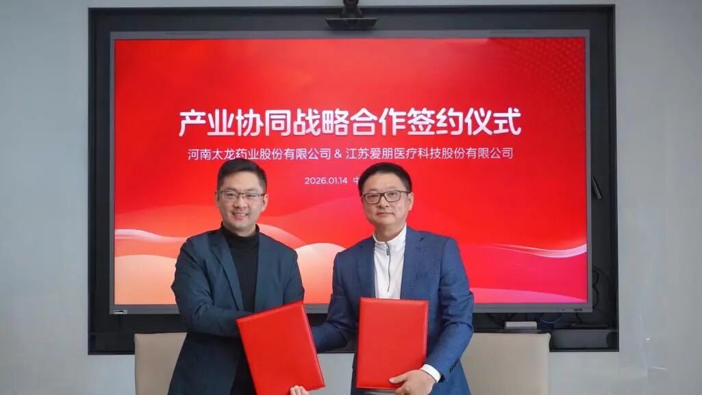 1月14日,江苏爱朋医疗科技股份有限公司(以下简称“爱朋医疗”)与河南太龙药业股份有限公司(以下简称“太龙药业”)正式签署产业协同战略合作协议。双方将秉持“优势互补、资源共享、协同创新、合作共赢”的理念,充分整合各自领域资源,探索“中药+器械、内服+外用”的协同发展新模式,携手迈入深层次共赢的全新发展阶段。