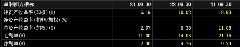 前三季度毛利率连续3年下滑,合同负债0.94亿较年初下滑85.62%
