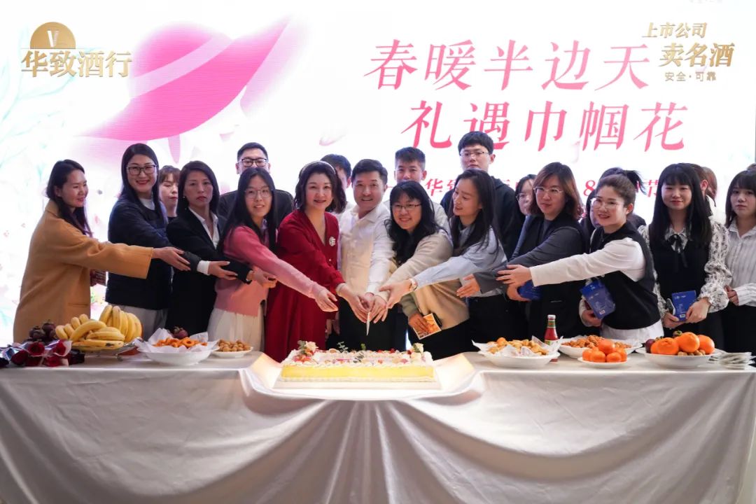 2024年3月8日,为感谢每一位女性员工为华致酒行发展所做出的杰出贡献,华致酒行总部开展以“春暖半边天,礼遇巾帼花”为主题的3.8女神节暨员工生日会活动。华致酒行常务副总裁杨强出席本次活动,对到场同事表达了诚挚的祝福。