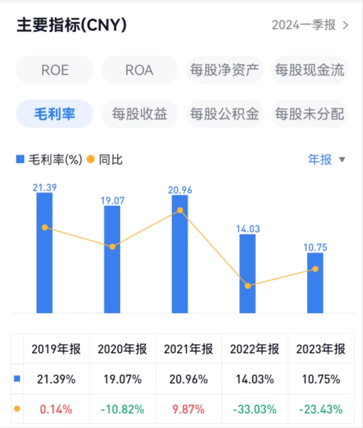 数据显示,2021年至2023年,华致酒行毛利率分别为20.96%、14.03%、10.75%。