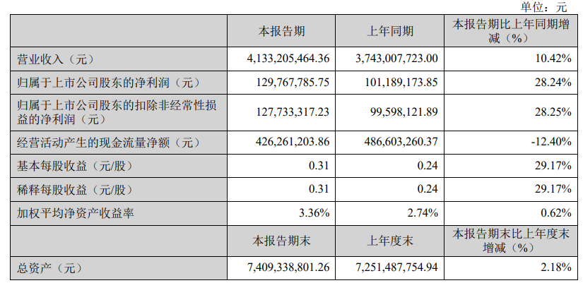 2024年一季度,华致酒行实现营收41.33亿元,同比增长10.42%;归母净利润1.30亿元,同比增长28.24%;扣非净利润1.28亿元,同比增长28.25%。经营活动产生的现金流量净额为4.26亿元,同比下降12.40%。