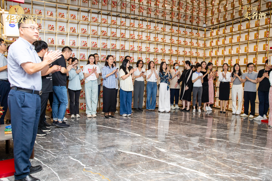 杨强为寿星们送上了真挚的祝福,感谢所有员工的努力奉献和一路陪伴,华致酒行成立以来,从“问”路人、“赶”路人到“引”路人,在发展的卷轴中书写了精彩的篇章。员工与企业历来互相成就,祝愿每位伙伴继续怀揣饱满的工作热情,与华致酒行并肩前行。