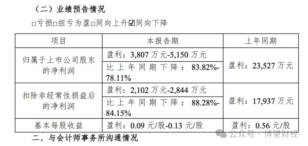 预告显示,公司2024年全年归母净利润预计仅为3807万元至5150万元,同比暴跌78.11%-83.82%;扣非净利润缩水至2102万元-2844万元,降幅达84.15%-88.28%。