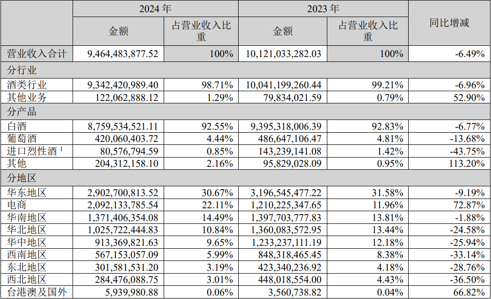 公开资料显示,2024年,华致酒行除台港澳及国外市场外,其他地区均出现不同程度营收下滑。其中,华北、华中、东北地区营收下滑超20%、西南、西北地区营收下滑超30%。