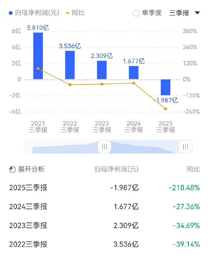 读创财经注意到,这是该公司自2022年以来连续4年三季报业绩下滑,同时也是公司2019年上市以来首现三季报亏损。