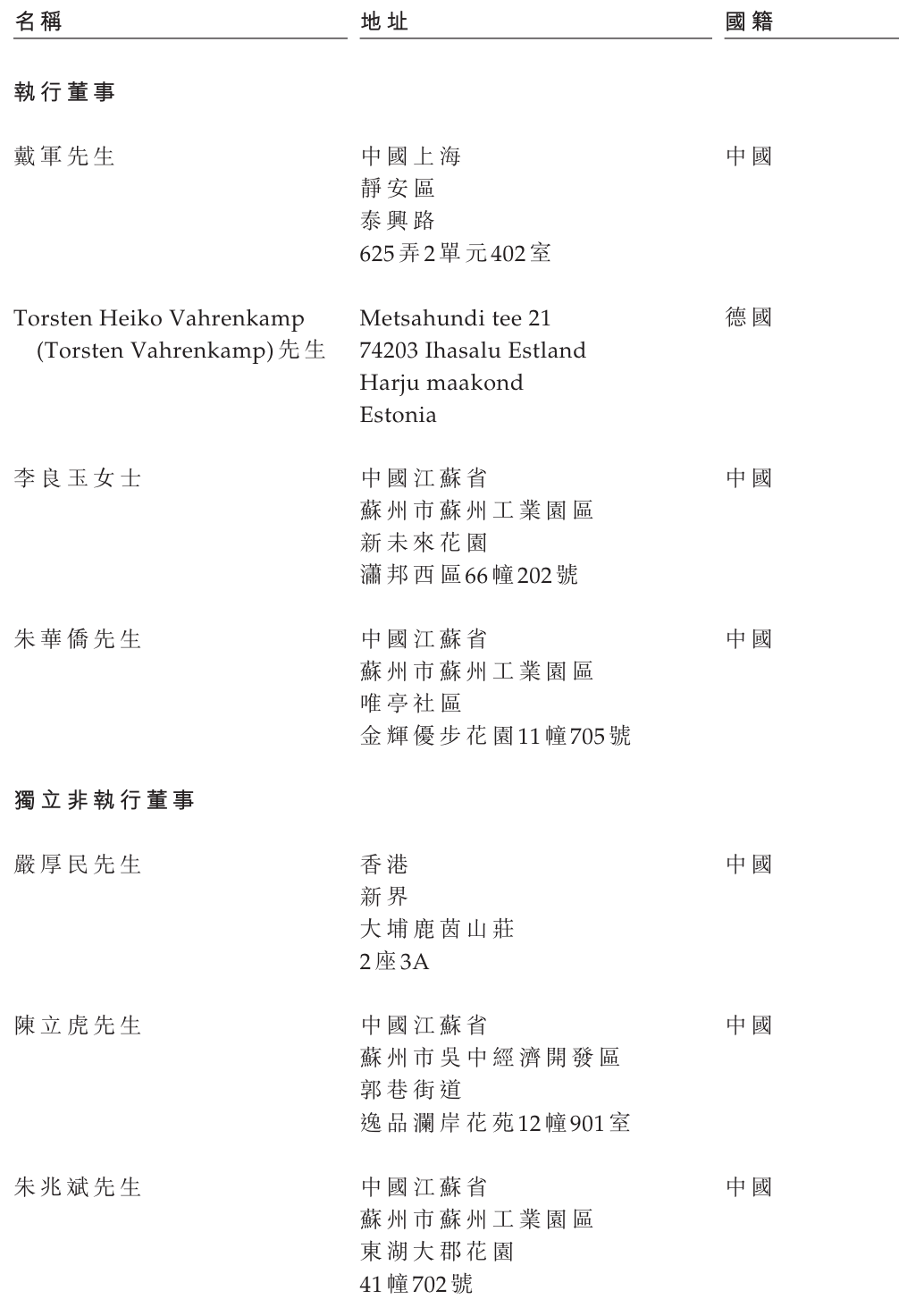 罗博特科执行董事分别为戴军、Torsten Heiko Vahrenkamp(Torsten Vahrenkamp)、李良玉女士、朱华侨;独立非执行董事分别为严厚民、陈立虎、朱兆斌。