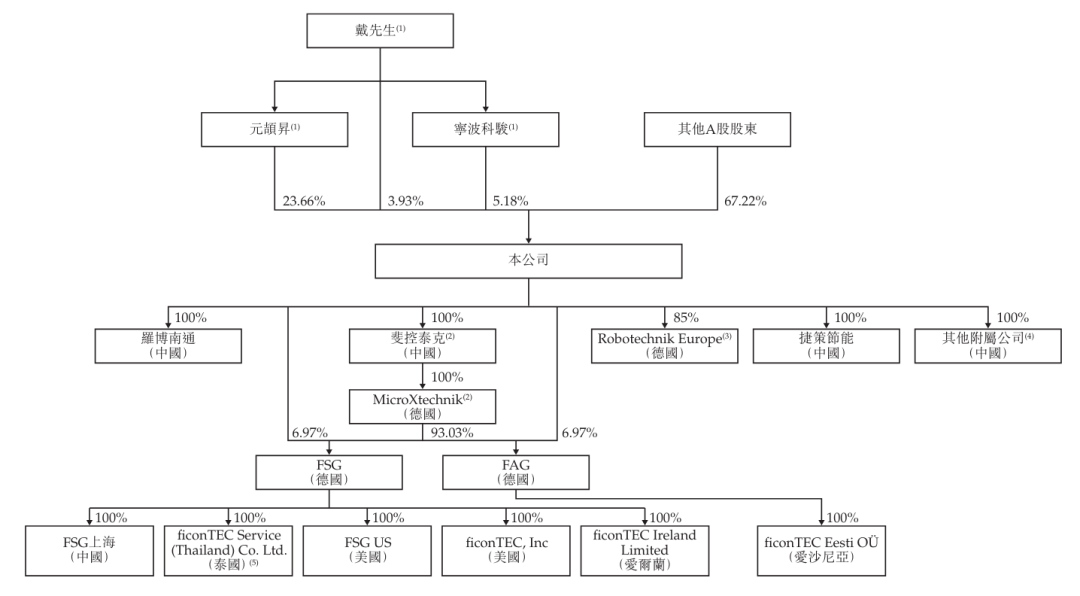 IPO前,罗博特科分别由元颉升、宁波科骏及戴军拥有约23.66%、5.18%及3.93%的权益。元颉升由戴军拥有约55.48%权益。戴军担任宁波科骏的普通合伙人。因此,于截至最后实际可行日期,戴军、元颉升及宁波科骏(作为一组股东)合共于公司已发行股本总额中拥有约32.78%的权益。