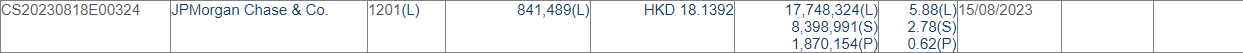 减持后,JPMorgan Chase & Co.最新持好仓数目为1774.83万股,持好仓比例由6.16%下降至5.88%。