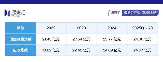 进入2025年前三季度,公司经营现金流净额达24.36亿元,较2024年同期有所改善,但应收账款规模仍维持在24.67亿元的高位,绝对数额持续走高,不仅持续占用大量营运资金,也暴露了下游客户付款能力减弱带来的信用风险。