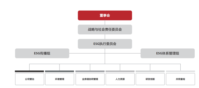 而且,ESG不能只有一个挂名的小组。董事会以及对ESG负责的董事,要真正把ESG融入企业的日常治理实践,ESG从战略到执行有明确的配套组织架构。