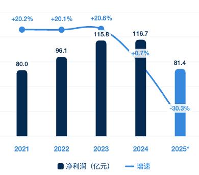2021-2023年,这三年处于典型的“量价齐升”阶段。营收从约253亿增至349亿,年复合增速约17%;归母净利从80亿增至116亿,年复合增速约20%。