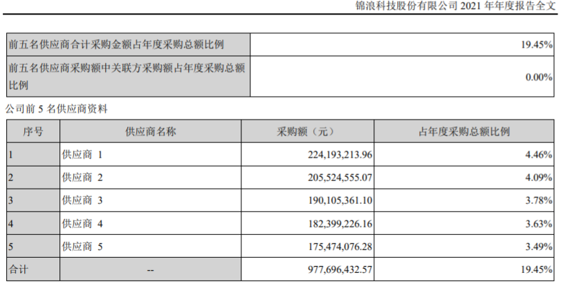 锦浪科技2021年年报显示,其对第一大供应商的采购金额只有22419.3万元,远低于晴天科技披露的43546.2万元,差额为21126.9万元。