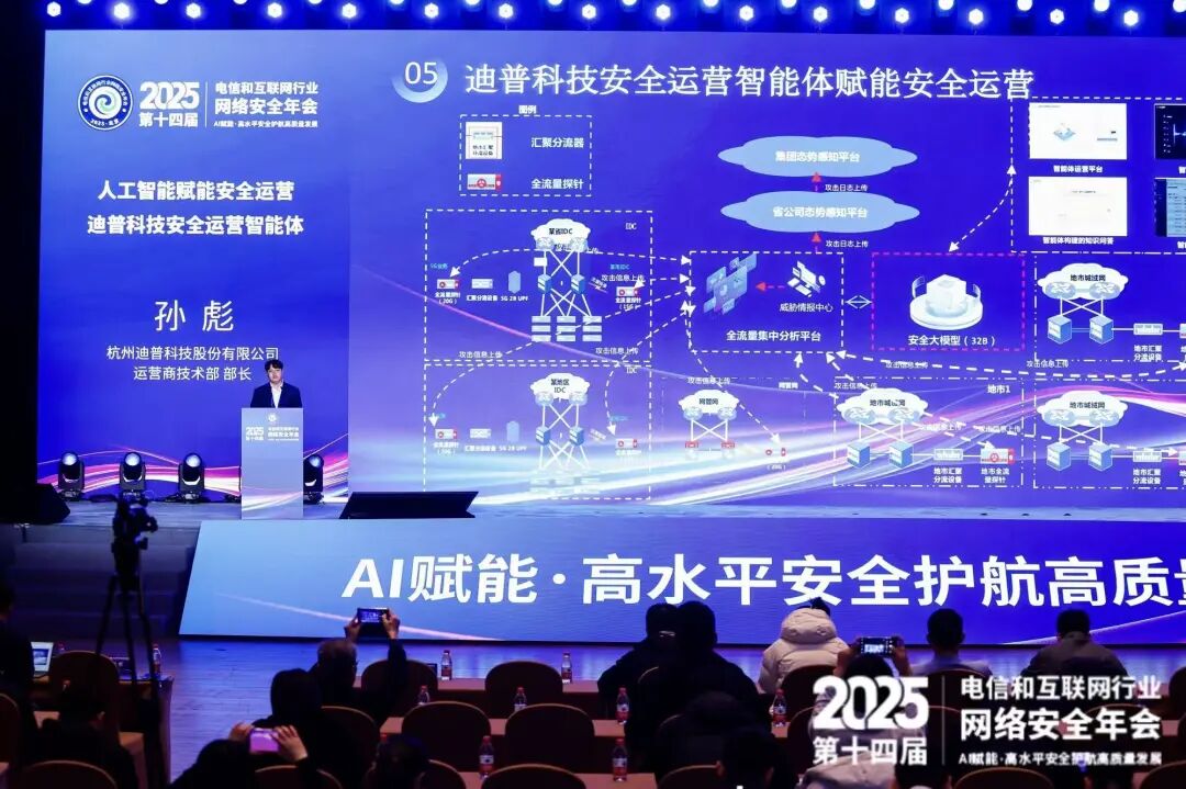 迪普科技 作为国内网络安全产业的重要力量,携核心安全技术与场景化解决方案精彩亮相本次年会。期间,工业和信息化部网络安全管理局、中国信息通信研究院、各省通信管理局及运营商集团的相关领导专程莅临 迪普科技 展台,与 迪普科技 技术专家围绕网络安全技术创新趋势、行业实战落地经验等核心议题深入交流探讨,充分关注 迪普科技 在AI赋能安全运营、新型基础设施安全防护等领域的实践成果。