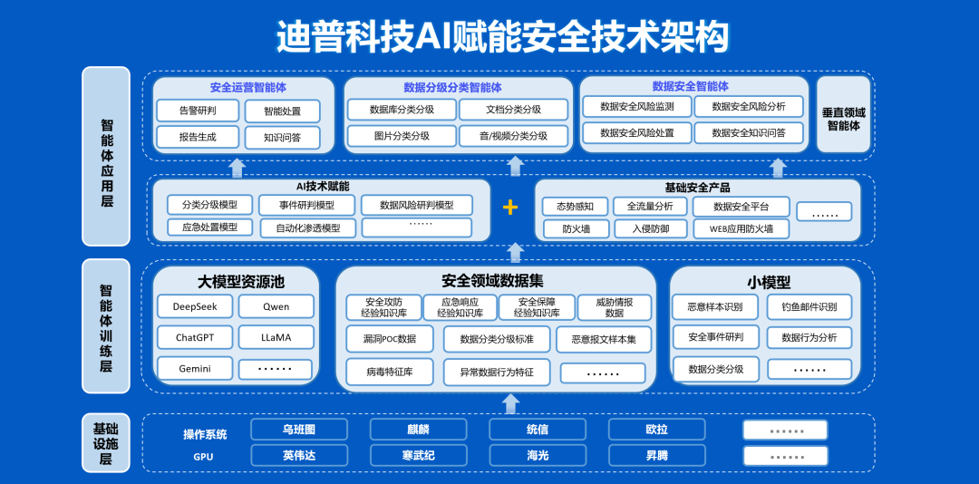 迪普科技 依托多年技术沉淀,构建了“基础设施层-智能体训练层-智能体应用层”的技术架构,形成了从硬件平台、软件系统到AI模型的全栈能力,推出安全运营智能体核心方案。该方案基于海量攻击报文数据训练与专家经验库验证,通过有监督微调及强化学习持续优化,实现96.2%的安全告警研判准确率,秒级闭环处置响应,每日可处置上万条安全事件,工作效率飙升,相当于多名中级安服人员同时投入;在加密流量检测、隐蔽隧道识别、Web攻击防护等关键场景中,AI威胁检测准确率均达90%以上。目前,该方案已在某省移动等项目中落地见效。