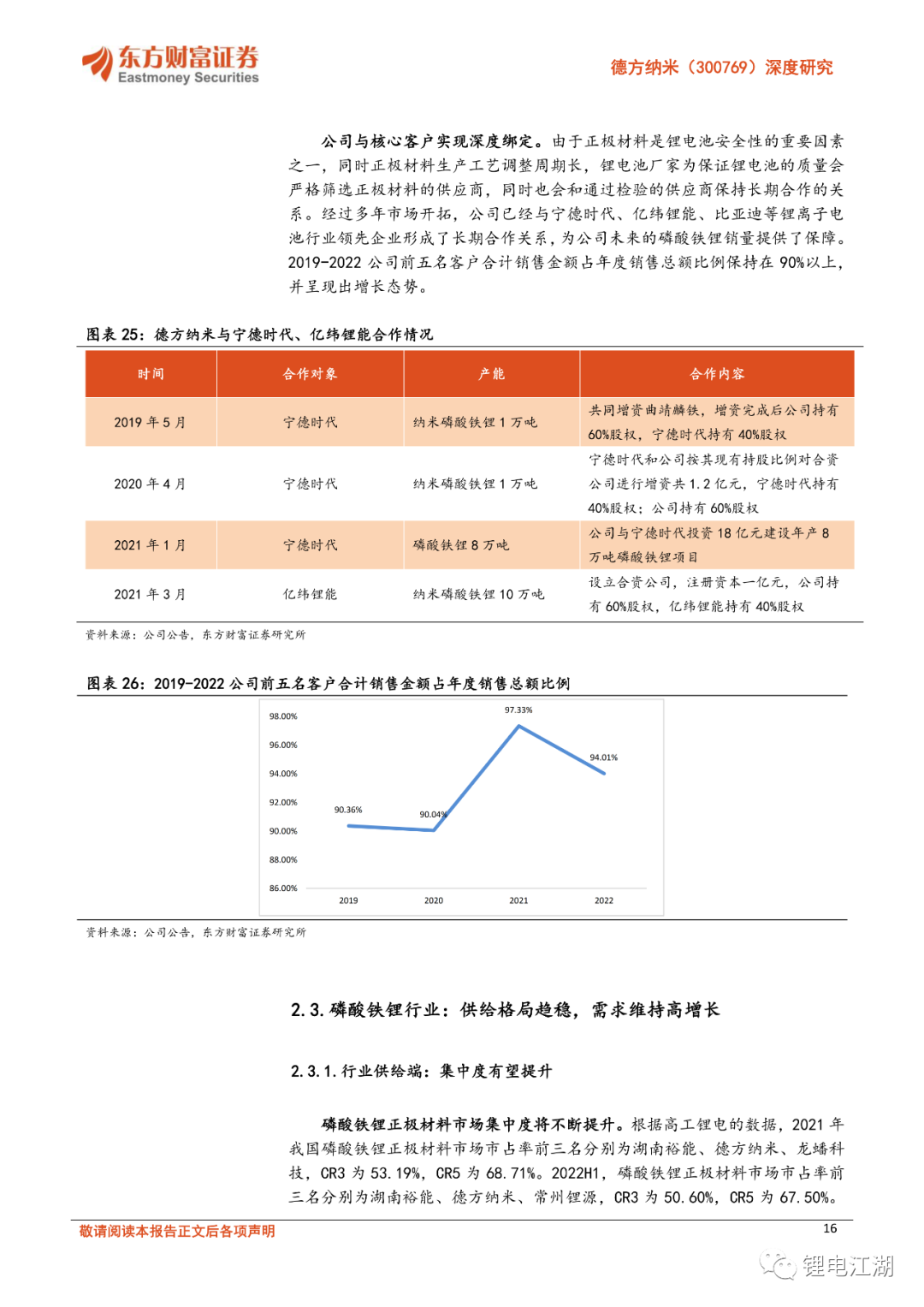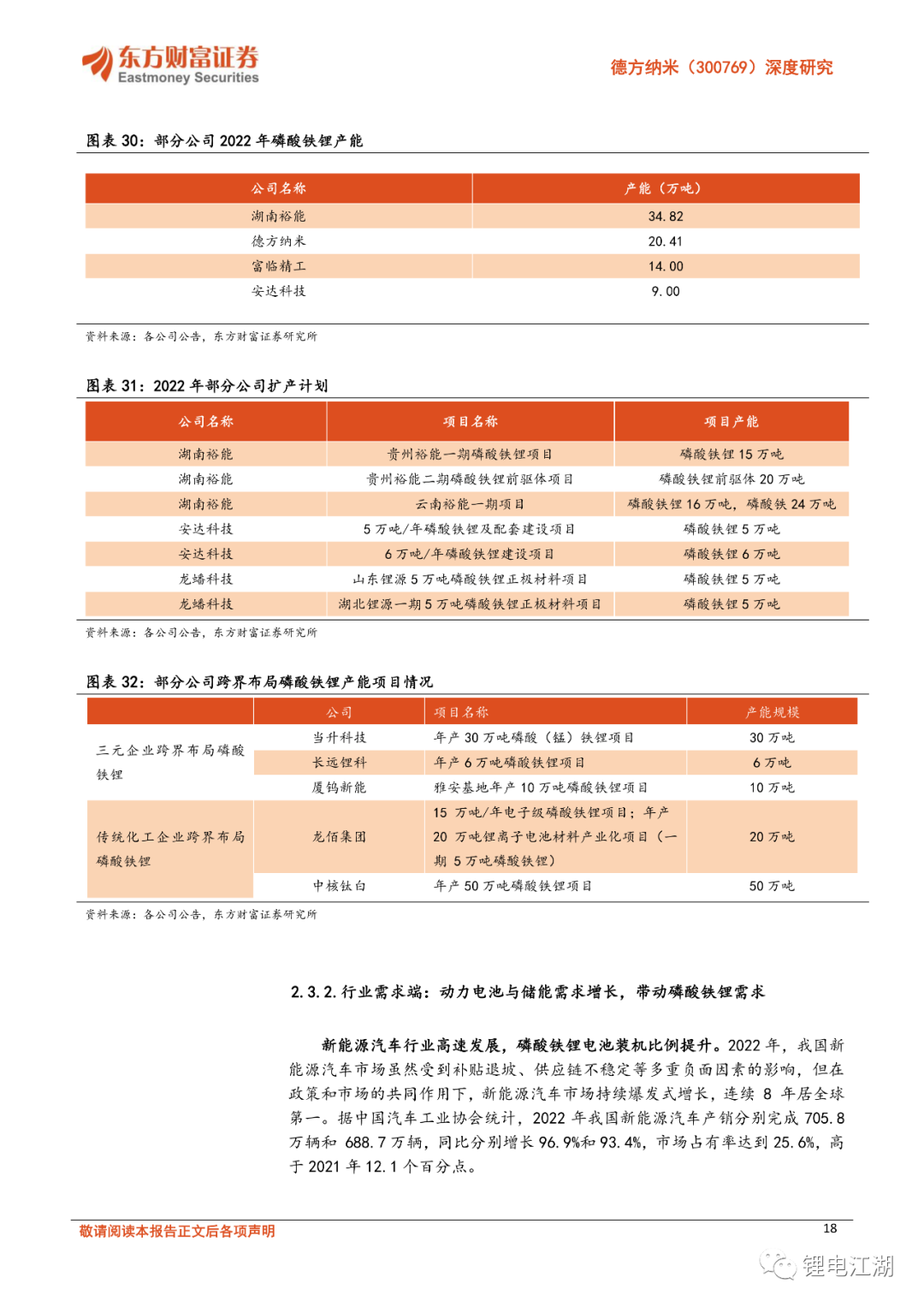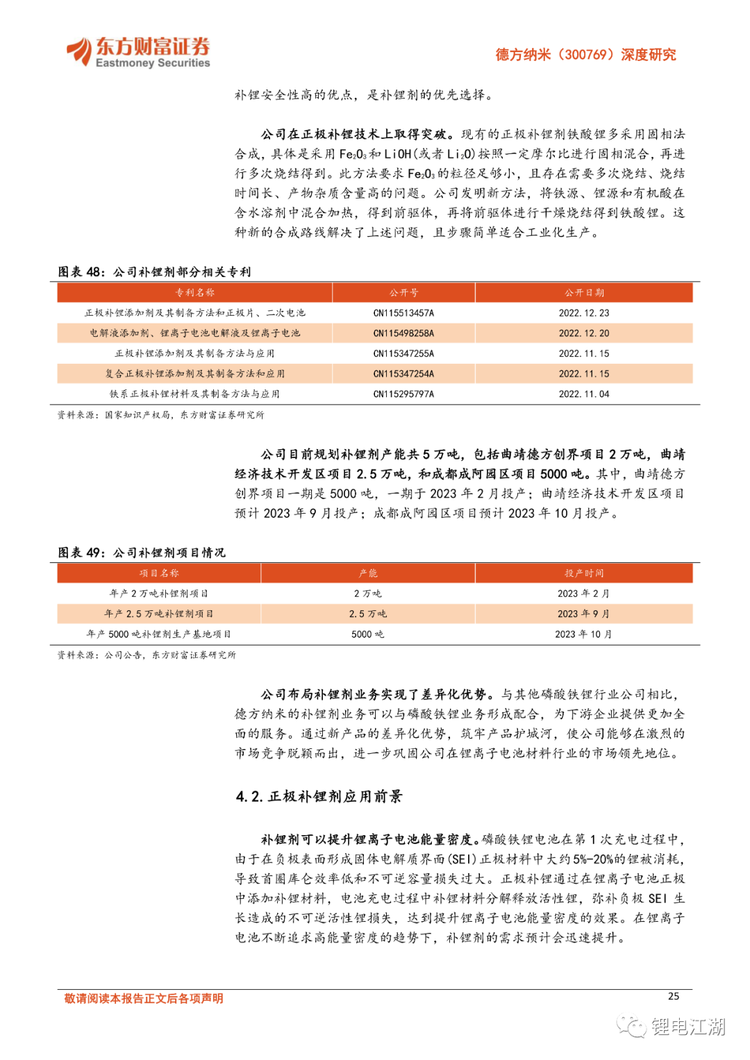布局补锂剂业务实现差异化优势。与其他磷酸铁锂行业公司相比,德方纳米的补锂剂业务可以与磷酸铁锂业务形成配合,为下游企业提供更加全面的服务。曲靖德方创界年产2万吨补锂剂项目(一期)已于2023年2月底顺利投产,增加补锂剂产能5,000吨/年。此外公司分别在成都及曲靖投资建设补锂剂产能,预计2023年完成设备安装调试并正式投产,预计共增加补锂剂产能3万吨/年。
