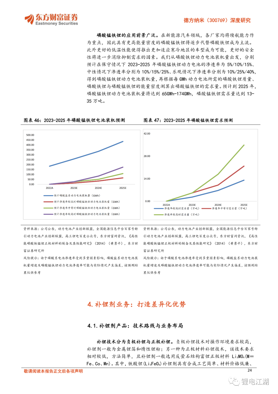 磷酸锰铁锂及补锂剂业务导入不及预期风险