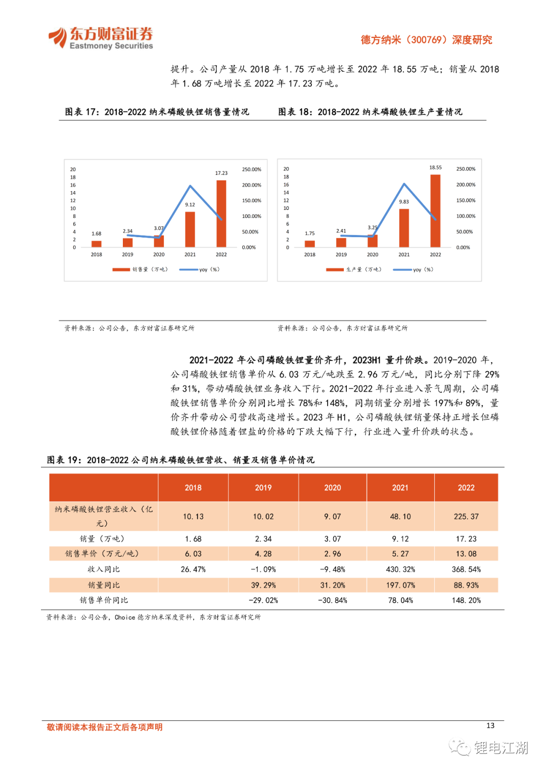 公司是磷酸盐系正极材料龙头企业,磷酸铁锂生产技术优势明显。公司致力于锂离子电池核心材料研发、生产和销售。下游新能源汽车行业与储能行业的快速发展带动公司的营业收入实现了高速增长。2022年公司实现营业收入225.57亿元,同比增长355.30%。2023年第一季度,公司营业收入为49.45亿元,同比增长46.56%。公司独家采用液相法生产工艺,产品具有导电性较好、内阻较低、颗粒均匀、循环寿命长等优势,同时具备了良好的电化学和纳米材料的性能具备良好的电化学和纳米材料的性能,此外液相法降低了对原材料种类、纯度、粒度的要求与生产过程中的能耗,降低生产成本。