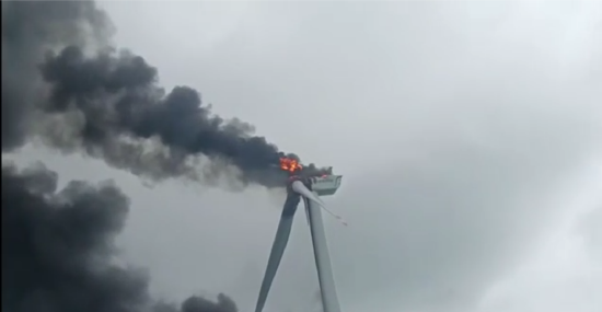 疑似运达股份生产的海上风电机组起火事件持续发酵。网上流传的一段视频显示,印有运达股份Logo的海上机组起火燃烧,机组机舱位置涌出滚滚浓烟,火焰及浓烟之大,甚至将其中一只叶片完全遮挡。