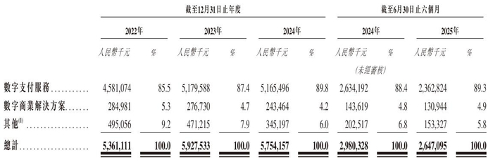 但需要注意的是,数字支付业务作为拉卡拉的主要创收渠道,2025年上半年收入同比下滑10.3%至23.62亿元,且不仅银行卡支付业务的总支付额出现了12.2%的下降,扫码支付的交易额也同比下滑2.6%至6.56亿元。
