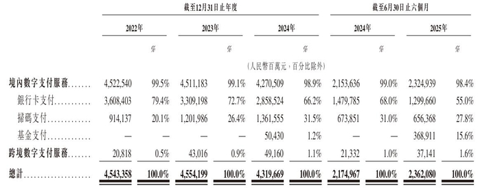 而2025年收入的继续下滑,则主要由于客户付款习惯产生了从银行卡支付转向扫码支付的改变,银行卡支付的收入占比下滑,以及该公司主动提升了商户入驻标准并加强管理现有客户群,最终导致平均总支付额下降。