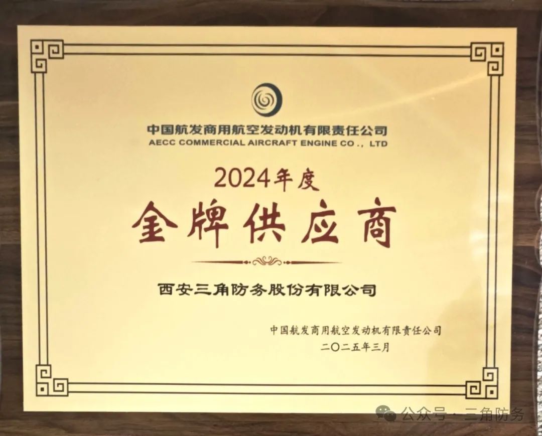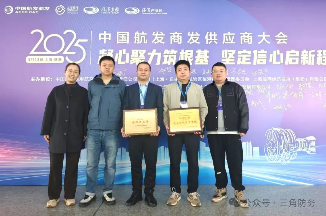 2025年3月13日,在中国航发商发年度供应商大会上,西安三角防务股份有限公司凭借卓越的产品质量、持续的技术创新以及良好的交付保障,荣获中国航发商发“2024年度金牌供应商”及“长江项目一期突出贡献优秀集体”称号,也是唯一一家锻铸造供应商荣获金牌供应商奖!在本次大会上,我公司副总经理曹亮作为供应商代表发言,感谢中国航发商发对公司的认可和信任。2025年,公司将持续聚焦客户需求,打造卓越的品质,实现有质量的交付,全力以赴为客户创造更大价值。