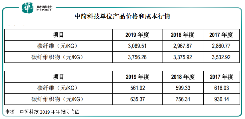 从已披露数据看,2017-2019年公司碳纤维销售价格呈逐年小幅上涨趋势,而碳纤维及其织物的单位成本逐年降低。