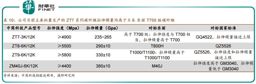 公司ZT7系列碳纤维产品是根据用户要求从T700演变而来,在技术质量和工程化生产方面均处于国内领先。同时,ZT7系列碳纤维拉伸强度、拉伸模量等综合性能高于日本东丽T700级碳纤维。