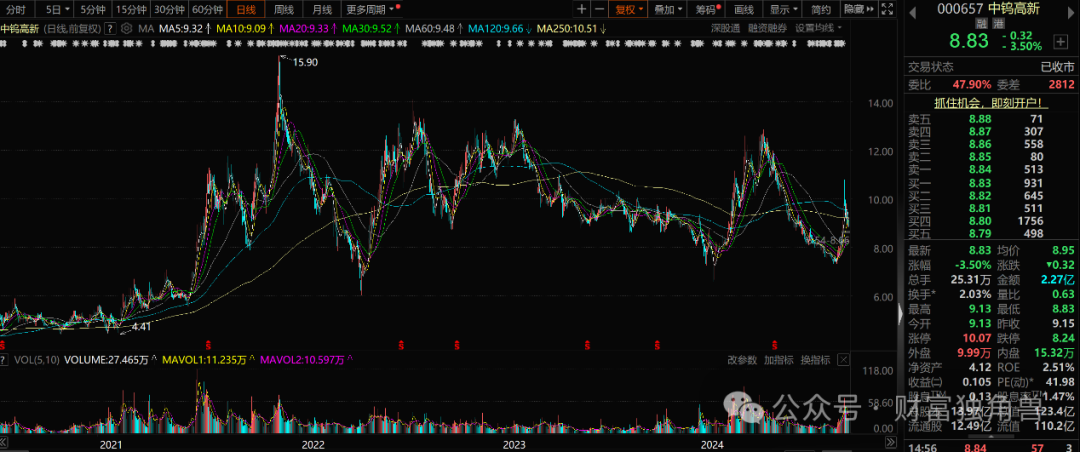 笔者还发现,该基金在2022年1季度持有359.34万股的中钨高新,2022年2季度持有321.29万股,2022年3季度持有242.11万股,2022年4季度持有44.09万股。到了2023年1季度已经没有了中钨高新的股票仓位,然而,从中钨高新股票价格来看,该基金持有期间股票价格出现下跌,在2022年1月3日-2023年3月30日股票价格下跌了16%。