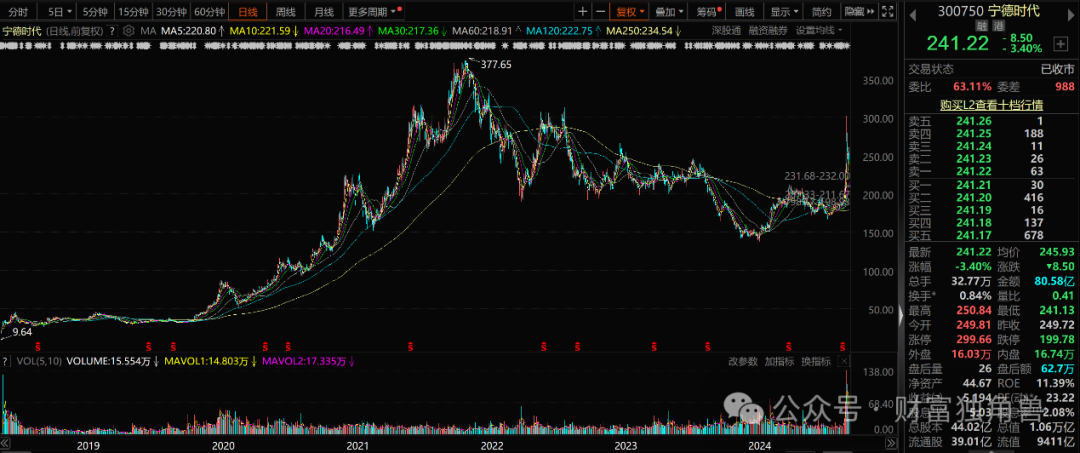 然而,在整个持股期间,宁德时代股价出现下跌,在2022年10月8日-2024年10月16日此前股票价格曾出现下跌,但近期受股市利好影响,宁德时代股票价格出现暴涨,这期间股票上涨了8.82%。如果接下来宁德时代股票价格继续上涨,那对基金净值有利好。如果股票价格出现下跌,那对基金净值会再度造成影响。