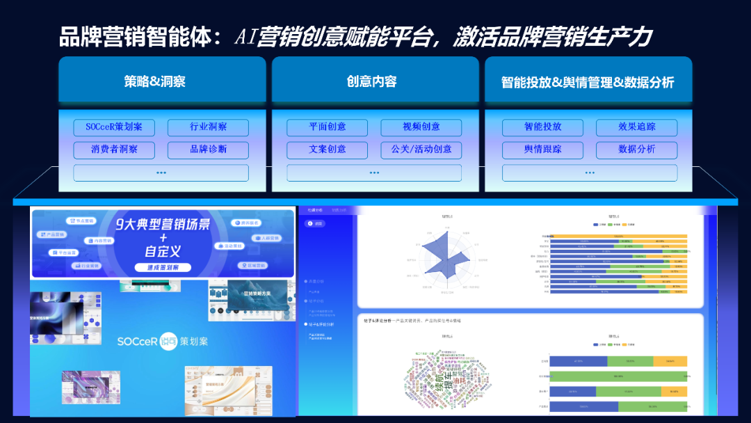 因赛AI产品研发目前聚焦三大方向:品牌营销、效果营销、电商营销,分别推出AI品牌营销智能体「SOCceR说可策划案」、AI效果营销智能体「智剪」以及AI电商营销智能体「掂商DynSight」等。当前,各方向产品正在稳步迭代。