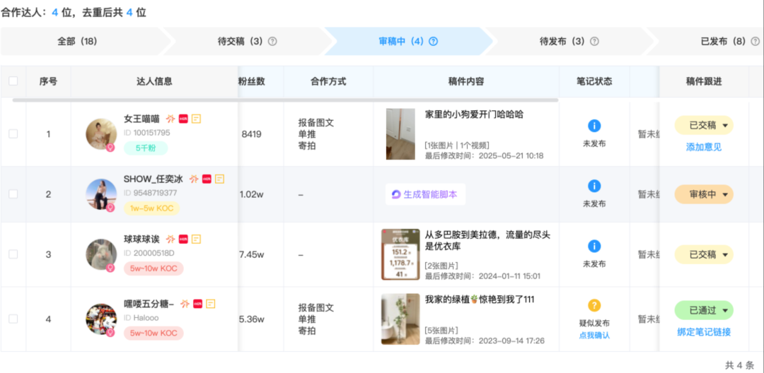 ?数据双引擎自动填充达人基础信息与内容表现,确保决策始终基于最新动态
