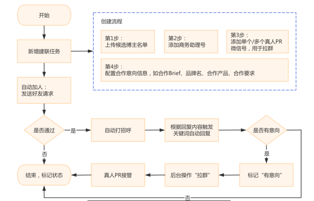 ? AI-PR建联系统通过机器人批量触达目标博主,智能识别“有意向”“发资料”等关键语义,实时标记合作状态并自动对接BD团队,让人力聚焦深度谈判