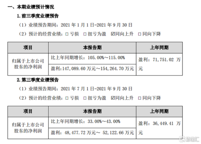 再看三季报预告,公司预计第三季度归属净利润同比增幅仅为33%-43%。相比前两个季度,第三季度业绩增速是大幅下滑状态。