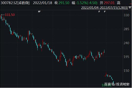 股价表现上,今年以来,卓胜微股价便波动下行,截至7月19日收盘于104.58元/股(前复权,下同),较上市以来峰值339.99元/股(2021年6月30日),大挫69.24%,总市值蒸发逾800亿元。