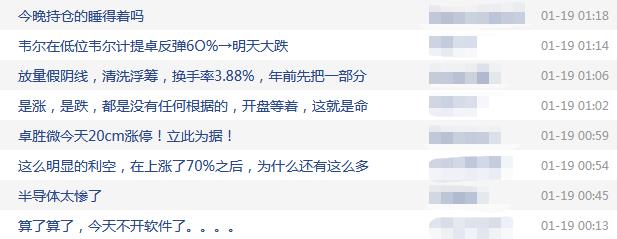 股民对于卓胜微大幅下降的业绩也多数心情低迷,深夜还在股吧发表看法,有人称是涨是跌都是命,还有人表示“今天不开软件了”。