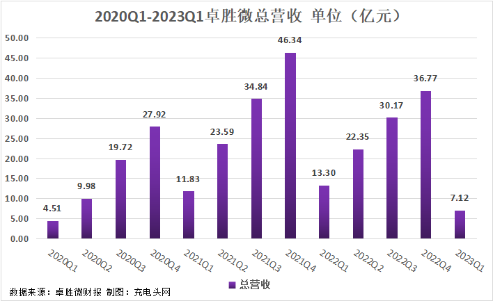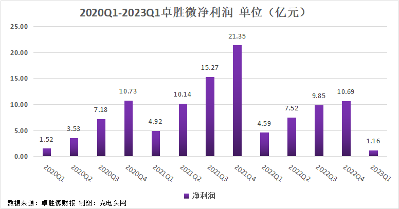 卓胜微(股票代码:300782)在4月28日公布了《2023年一季度报告》。报告显示,公司2023Q1实现总营收7.12亿元,同比下降46.5%;实现归母净利润1.16亿元,同比下降74.64%;稀释每股收益(元/股)0.2182 元。