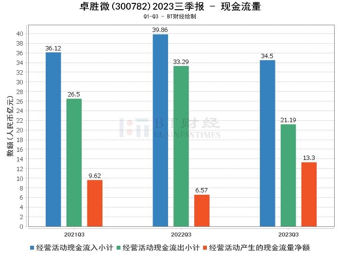 综上所述,卓胜微公司在2023年三季度的经营状况总体稳定,资产总计和净资产均有所增长,现金流量净额大幅提升,但净利润和营业利润相比上年同期有所下滑。这可能与公司在射频领域的投入以及自有完整生态链的建设有关,这些投入可能会在未来带来更大的收益。
