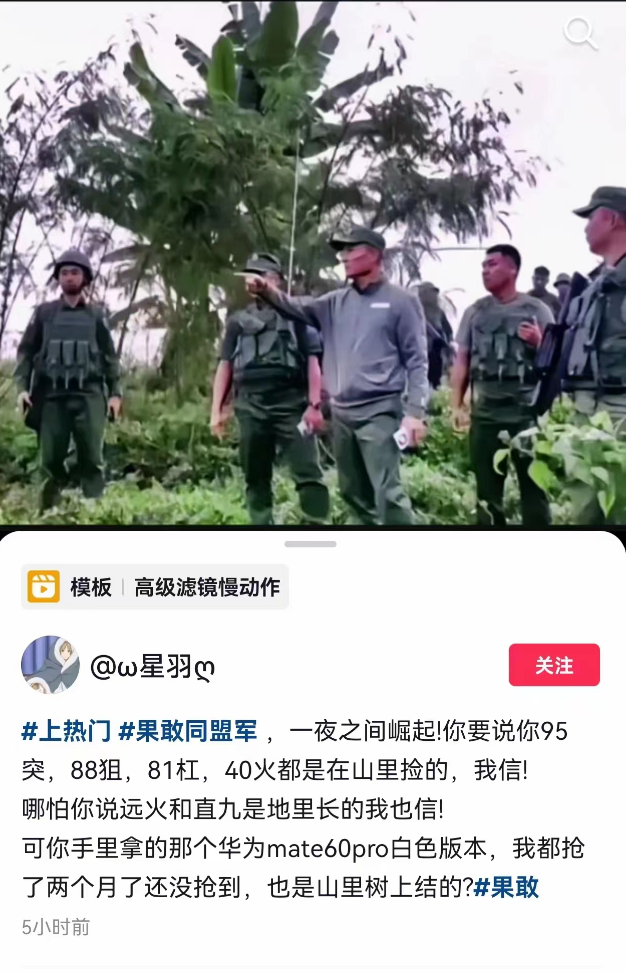 最近一张缅甸冲突的照片突然火爆起来,画面中心的C位人士,手里拿着一部“遥遥领先”。