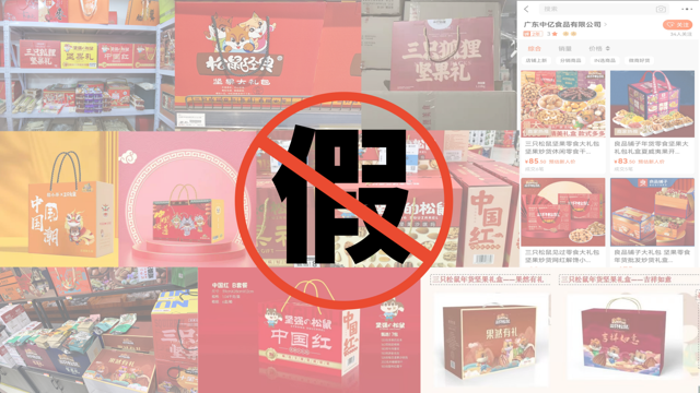 (2)我司法务部开展了以“猎狐行动”为代号的长期打假行动,重点打击假冒产品、礼盒以及门店。以在山东临沂某批发市场仿冒三只松鼠坚果礼产品事件为例,嫌疑人仿冒三只松鼠坚果礼销售金额即高达530万余元,触目惊心。