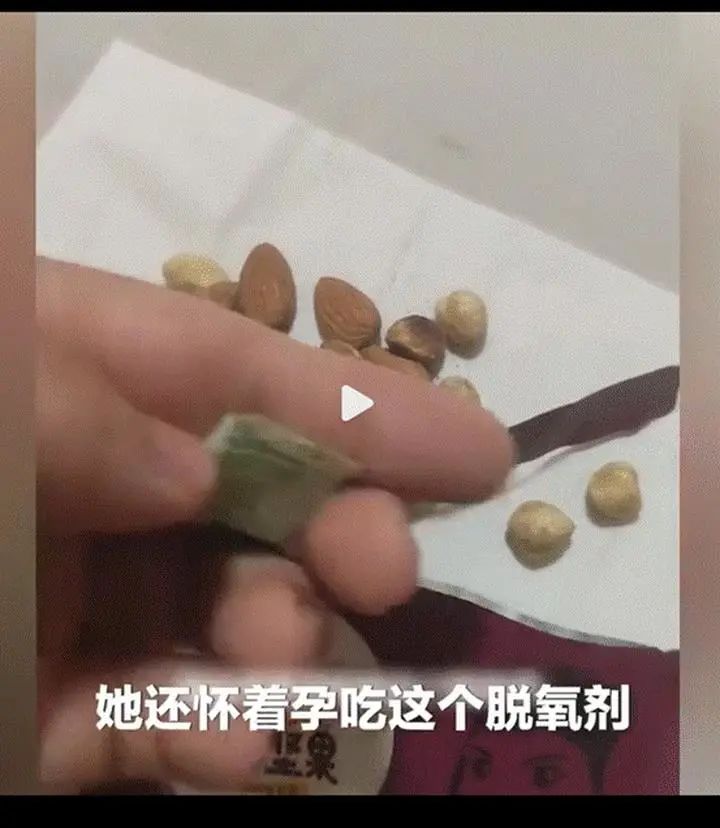 7月25日,有消费者爆料称购买的三只松鼠每日坚果产品中脱氧剂包装破损,而发现该问题之时,其尚在孕期的妻子已经食用了半包。该消费者旋即打开另一袋商品,竟然发现了同样的问题。彼时,三只松鼠回应称,根据视频中图片判断,此脱氧剂破损原因系投放过程中误切所致。