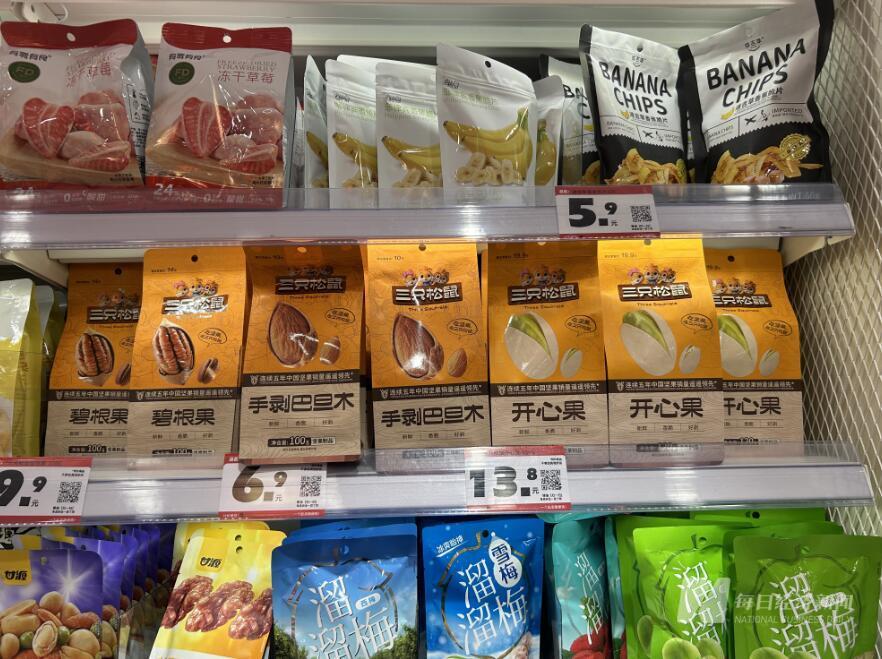 “芒果干,我们店里卖29.8元一斤,去皮称重后27.8元一斤;夏威夷果,我们卖29.8元一斤(价格比2023年低30%),而有的店现在卖58元一斤(29.8元相对于5.1折),我们的价格能够做到跟量贩零食一样,甚至比他们更便宜。”三只松鼠方面还介绍,风干鸭脖在超市里卖9.9元,零食量贩店卖5.9元或者6.5元,在三只松鼠社区零食店卖4.9元。