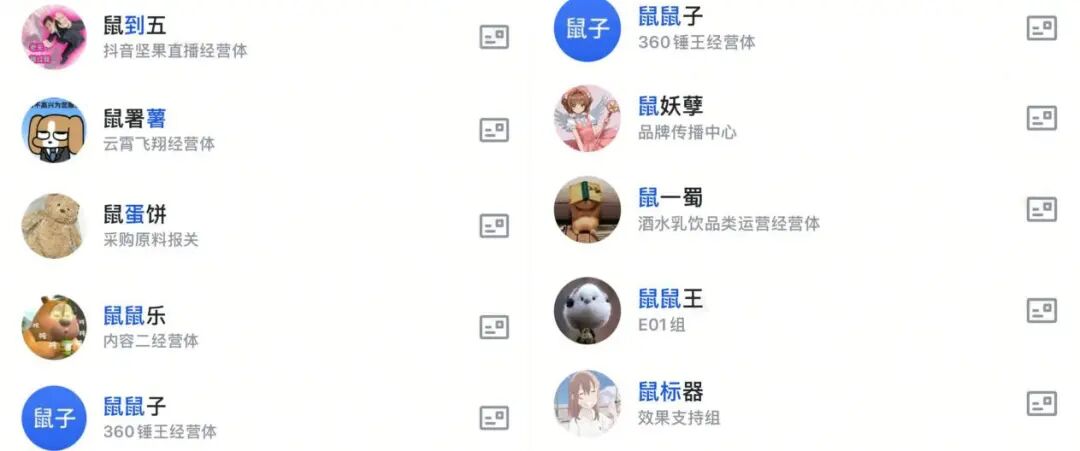 比如三只松鼠员工入职要需带鼠的花名,“客服鼠”、“发货鼠”,就连三只松鼠的经营体,都是“鼠”字命名的,比如:“鼠到五”、“鼠一蜀”、“鼠鼠子”、“鼠标器”等。