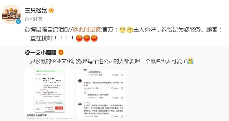 素来以亲和友爱的萌宠形象示人的三只松鼠,因被蛐蛐冲上了热搜,一些网友对花名谐音的误读、对企业文化的曲解,是否过头了?