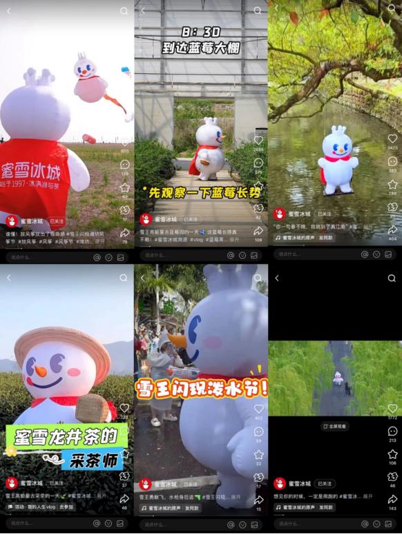 雪王IP之所以破圈,核心在于具有“活人感”,换句话说就是融入生活场景,接近用户。 蜜雪冰城 为雪王打造了Vlog,结合各类生活工作场景、记录雪王的日常生活,让雪王成为真实可感的人。