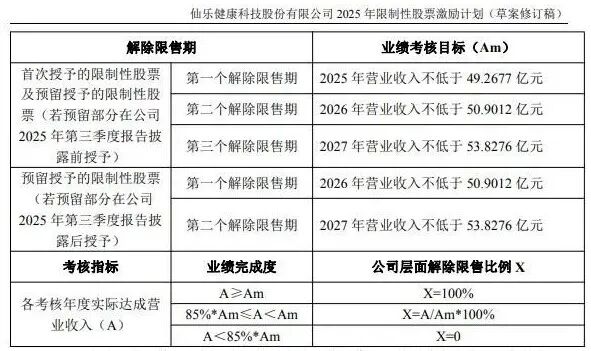 公告显示,仙乐健康业绩考核期为2025年度至2027年度。具体来看,公司的目标为2025年营业收入不低于49.2677亿元,2026年营业收入不低于50.9012亿元,2027年营业收入不低于53.8276 亿元。
