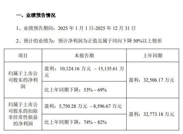 近日,仙乐健康发布业绩预告显示,公司2025年预计实现归母净利润1.01亿元至1.51亿元,比上年同期下降53%至69%;扣非净利润5750.28万元至8596.67万元,比上年同期下降74%至82%。